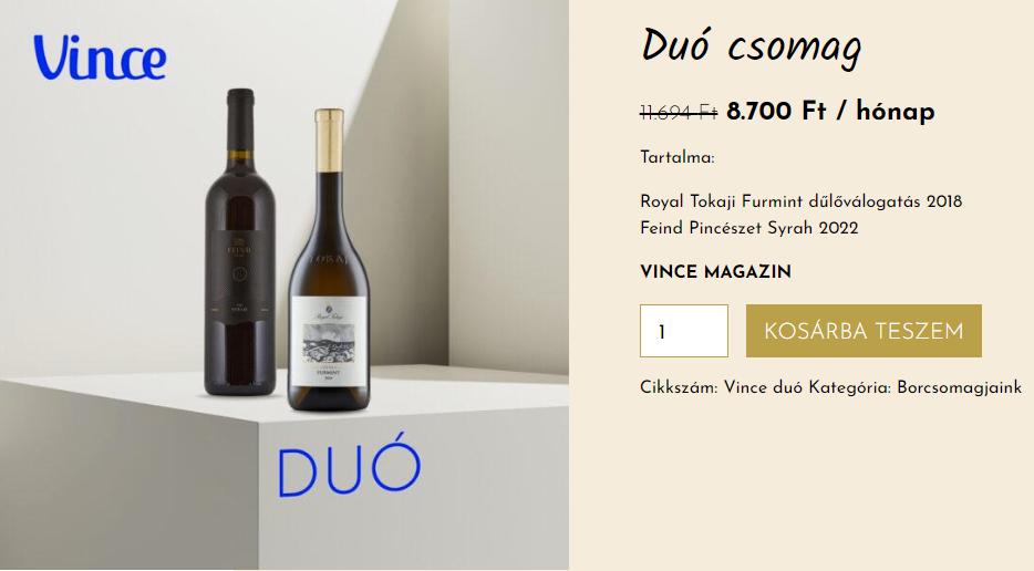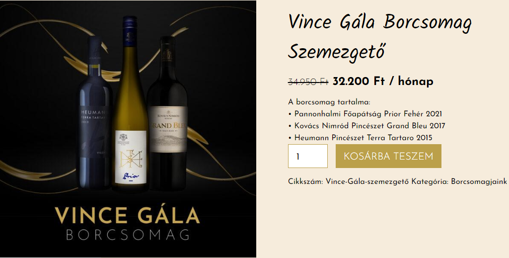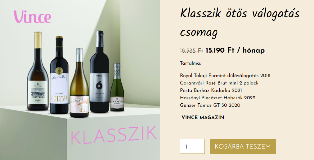 6. 눈길을 끄는 Vince 갈라와인 패키지 - 32200포린트