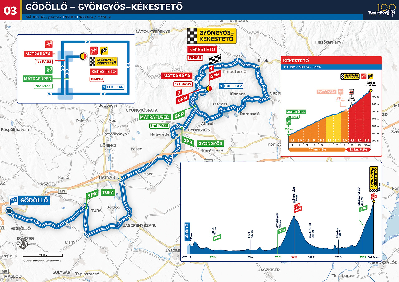첫 번째 뚜르 드 헝가리가 시작되었던 겔레스트 광장에서 시작되며 산악 고개 2개를 지나가는 코스입니다