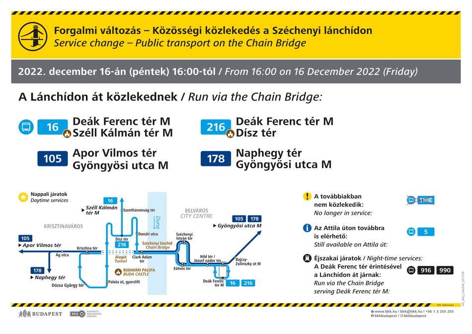 부다페스트를 상징하는 다리인 세체니 다리가 2022년 12월 16일 금요일 리노베이션을 일부 마치고 다리가 일부 개통이 됩니다. 임시 교통 일정에 따라 BKK 대중교통편과, 택시, 자전거, 오토바이 등만 다리를 이용할 수 있습니다.