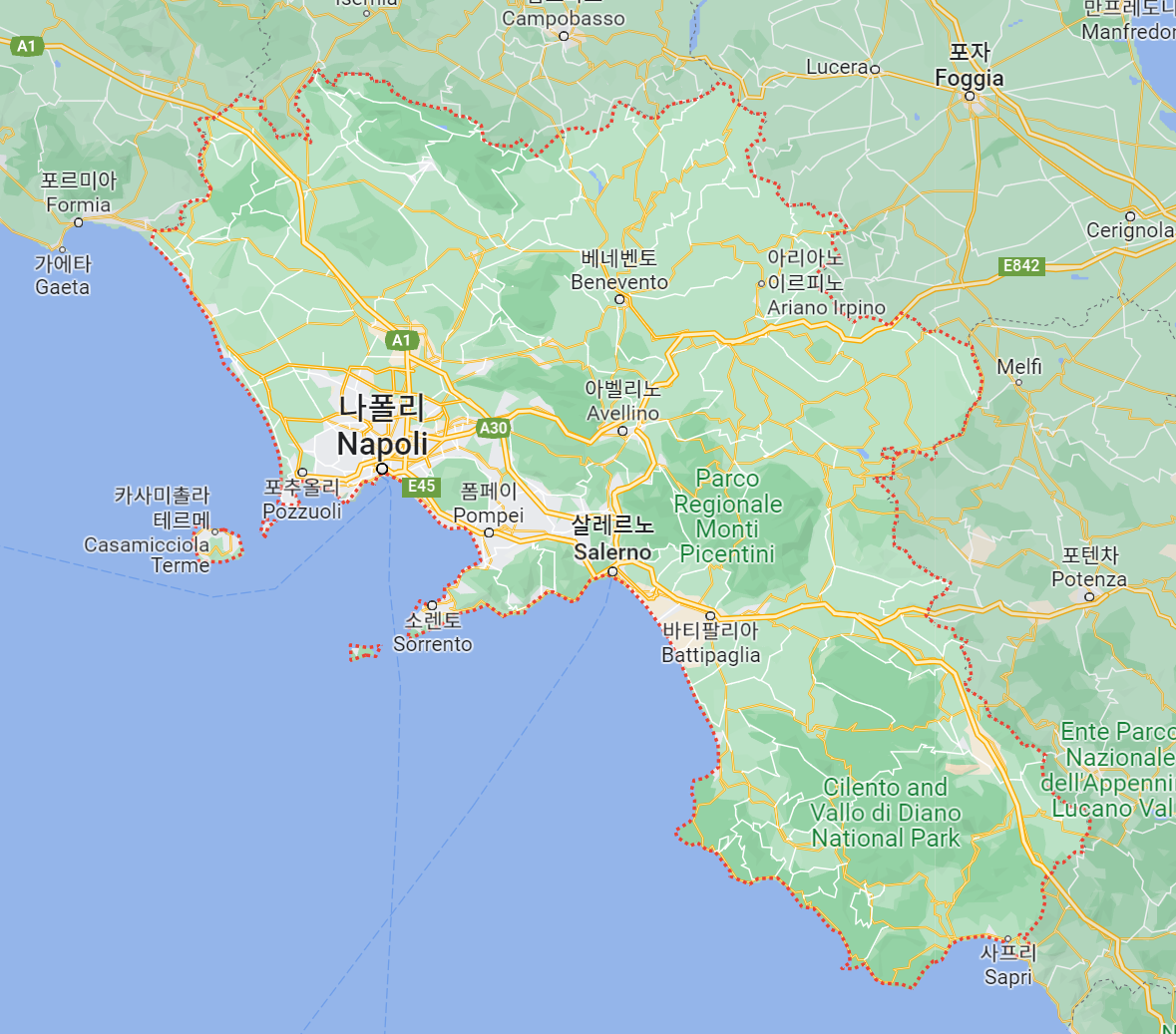 캄파니아 지역은 소렌토, 폼페이, 포지타노, 아말피, 카프리섬, 베수비오 국립공원, 나폴리 등이 속한 지역입니다.